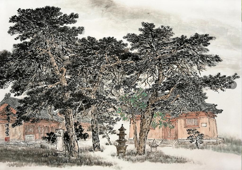 后來因為他繪畫上取得的成績,調到了忻府區(qū)文聯工作。條件好了,畫的畫更多了,畫風依然樸實親切,給人一種視覺的舒適感。這幾年他是在一路前進的,他筆下的線條清朗有力,墨色變化也更加豐富,畫中有了渾厚華滋的氣象。細看他的畫,樸實中蘊藏著精巧,拙拙的行筆中偶露鋒厲,給畫面帶來活力生機。我們在一起寫生,他在畫面經營上、構圖處理上總能給人意想不到的驚喜。畫面虛實處理把握的恰到好處,又能準確表現自然原貌的神采。于不知不覺中將自己的審美和情感融入了畫中,完成的寫生總比自然景色更加生動、更吸引人的目光,但又讓你看不出他是在哪里做了手腳。