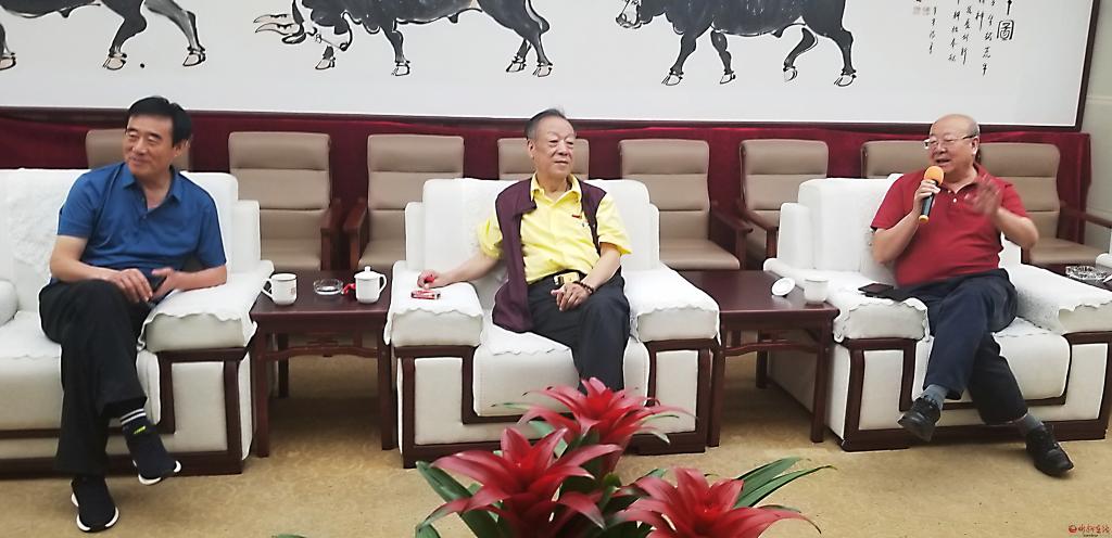 作者張懷文先生曾任忻州市市長,自在放牛、躬身“做?!?、樂于畫牛,是張懷文先生的人生經(jīng)歷。他退休后癡迷畫牛,傾心抒寫“三牛”精神,成為當(dāng)今中國畫壇獨(dú)一無二的“牛人”。 受張懷文先生邀請,忻州文化、書畫、新聞界的人士專門去太原觀展,并就張懷文牛畫藝術(shù)進(jìn)行了座談。 據(jù)了解,本次展覽展期為時半年。(班彥欽 攝)