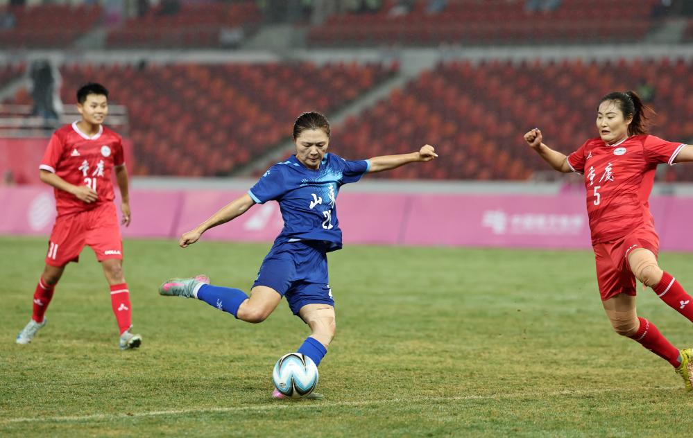 新華社廣州11月4日電(記者張武岳、劉宏宇)第十五屆全國運(yùn)動(dòng)會(huì)足球項(xiàng)目女子成年組比賽4日在廣東佛山開賽。A組揭幕戰(zhàn)中,廣東隊(duì)展現(xiàn)出強(qiáng)勁實(shí)力,5:0大勝內(nèi)蒙古隊(duì)。B組的山東隊(duì)則是剛剛開場(chǎng)就有進(jìn)球,最終3:0戰(zhàn)勝重慶隊(duì)。