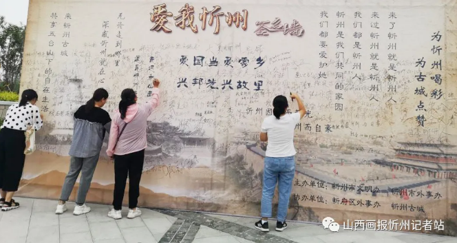 “走遍千山萬(wàn)水,還是忻州最美”“來(lái)了忻州就是忻州人,來(lái)過(guò)忻州就是忻州人”“愛(ài)國(guó)當(dāng)愛(ài)家鄉(xiāng) 興邦先興故里”……墻上的一句句充滿情感、生動(dòng)質(zhì)樸的語(yǔ)言,寫滿了對(duì)祖國(guó)、對(duì)家鄉(xiāng)的濃濃熱愛(ài),引起了過(guò)往游客路人的深深共鳴。游人們有的在這些文字旁簽名,有的合影留念,有的文思泉涌寫下一條條深情寄語(yǔ),盡情表達(dá)著對(duì)忻州發(fā)展的美好祝福和共建全國(guó)文明城市的堅(jiān)定信心。