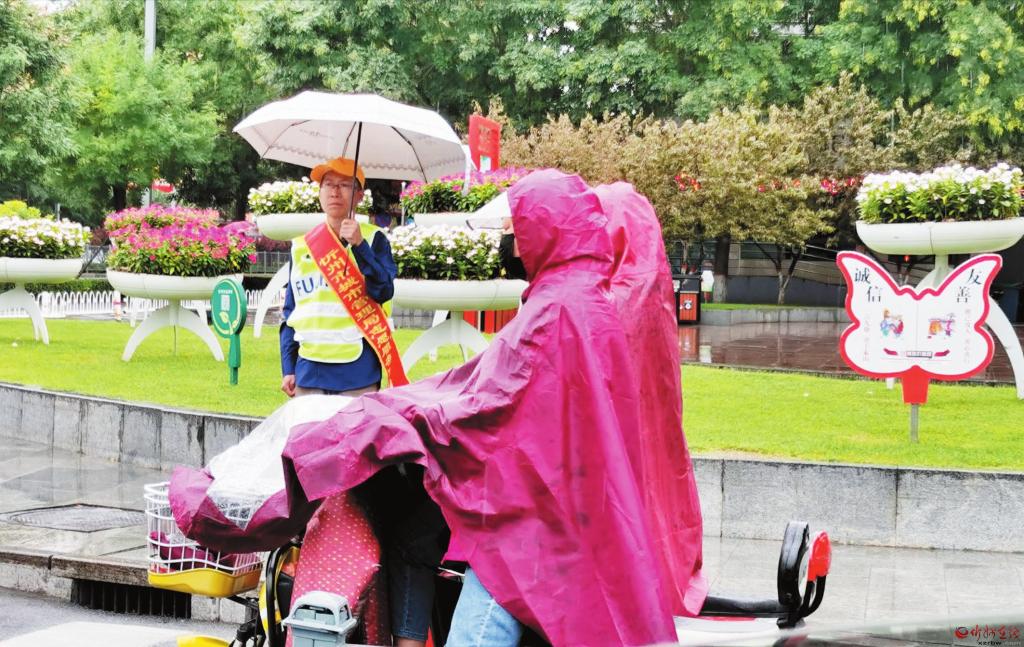 8月31日7點(diǎn)40分,我市城市管理局志愿者早早來到執(zhí)勤崗位,在風(fēng)雨中配合交警在長征街與七一路口維持交通秩序,對橫穿馬路、亂闖紅燈等不文明交通行為進(jìn)行勸導(dǎo),引導(dǎo)市民遵守交通法規(guī),提高安全意識(shí),用實(shí)際行動(dòng)為創(chuàng)建文明城市做貢獻(xiàn)。曹建華 攝 (責(zé)任編輯:盧相?。?/span> |