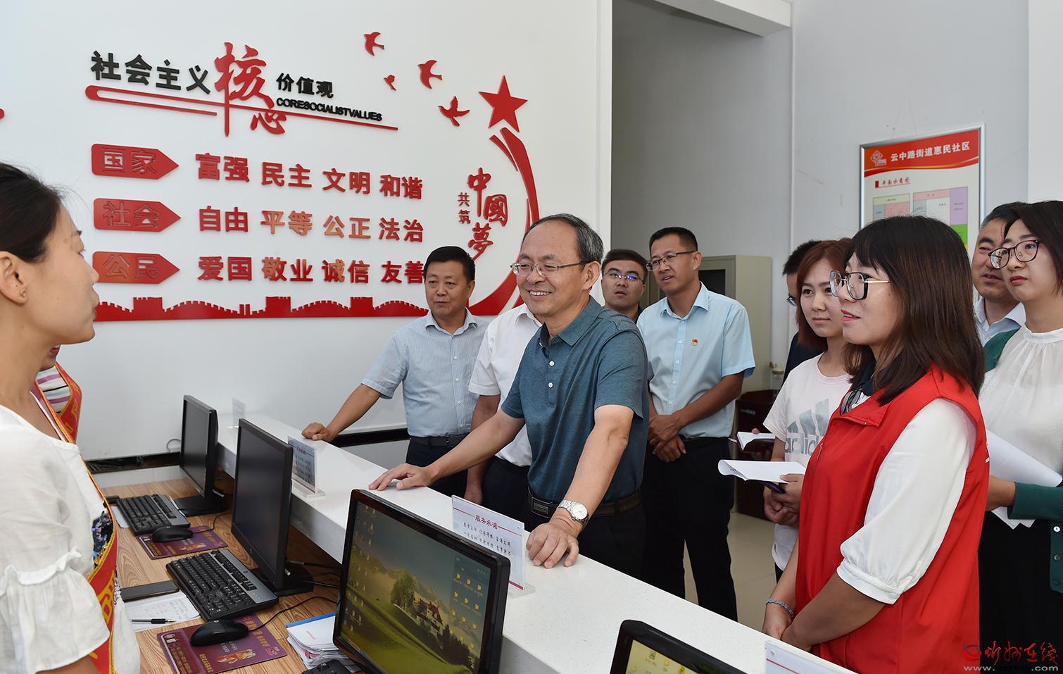 惠民社區(qū)創(chuàng)文氣氛濃厚,墻上張貼著創(chuàng)文展板,隨處可見溫馨的提示,志愿者隨時提供服務。鄭連生檢查了社區(qū)綜合文化服務中心,向工作人員詢問服務中心的功能和作用,并查看了社區(qū)創(chuàng)文資料。他強調,要切實發(fā)揮好綜合文化服務中心在文化宣傳、黨員教育、科普教育、普法教育、市民教育、家長學校、道德講堂等方面的作用,形成制度,制定活動計劃,按期開展活動,促進群眾素能的不斷提升。