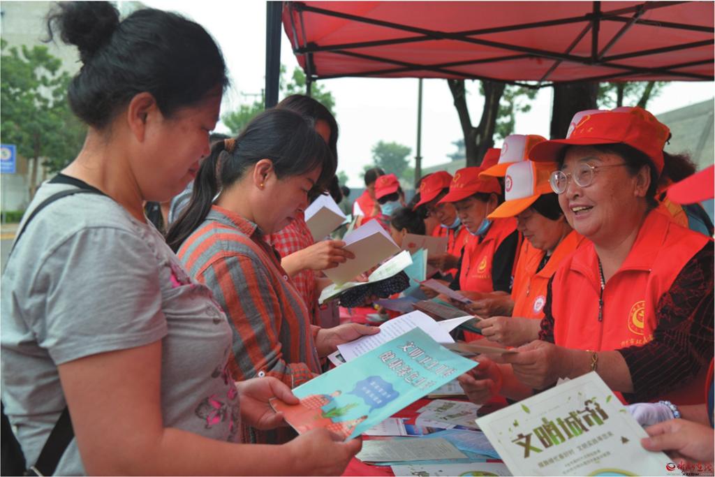 志愿者為過往群眾發(fā)放創(chuàng)文宣傳資料 本報通訊員 攝