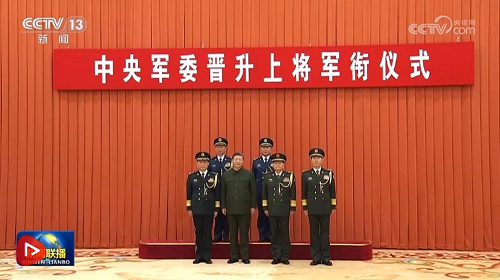 上午10時30分許,晉銜儀式在莊嚴(yán)的中華人民共和國國歌聲中開始。中央軍委副主席張又俠宣讀中央軍委主席習(xí)近平簽署的晉升上將軍銜命令。中央軍委副主席張升民主持晉銜儀式。