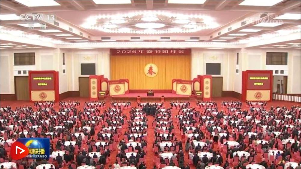 中共中央、國務院14日上午在人民大會堂舉行2026年春節(jié)團拜會。中共中央總書記、國家主席、中央軍委主席習近平發(fā)表講話,代表黨中央和國務院,向全國各族人民,向香港特別行政區(qū)同胞、澳門特別行政區(qū)同胞、臺灣同胞和海外僑胞拜年。