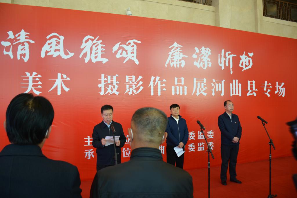 翰墨丹青揚(yáng)正氣,清風(fēng)廉韻沁民心。11月10日,由忻州市紀(jì)委監(jiān)委主辦,河曲縣紀(jì)委監(jiān)委承辦的“清風(fēng)雅頌·廉潔忻州”書(shū)畫(huà)美術(shù)攝影展河曲縣專(zhuān)場(chǎng),在臨隩公園美術(shù)館開(kāi)展。市政協(xié)副主席、縣委書(shū)記邊東圣出席儀式并作重要講話,縣委副書(shū)記、縣長(zhǎng)任鴻賓宣布“清風(fēng)雅頌·廉潔忻州”書(shū)法美術(shù)攝影展開(kāi)展,縣委常委、縣紀(jì)委書(shū)記、縣監(jiān)委主任張永明主持開(kāi)展儀式??h四大班子領(lǐng)導(dǎo)和其他縣處級(jí)領(lǐng)導(dǎo),全縣各鄉(xiāng)鎮(zhèn)、居民辦、黨群、政府、發(fā)改、農(nóng)口、政法、宣傳文衛(wèi)各口黨員干部及全體紀(jì)檢監(jiān)察干部共計(jì)180余人參加了開(kāi)展儀式。