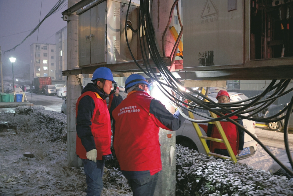 1月26日,國(guó)網(wǎng)山西電力(長(zhǎng)治沁縣)太行黎明共產(chǎn)黨員服務(wù)隊(duì)工作人員正對(duì)供電線路和設(shè)備進(jìn)行巡檢。張高峰 張玉林?jǐn)z