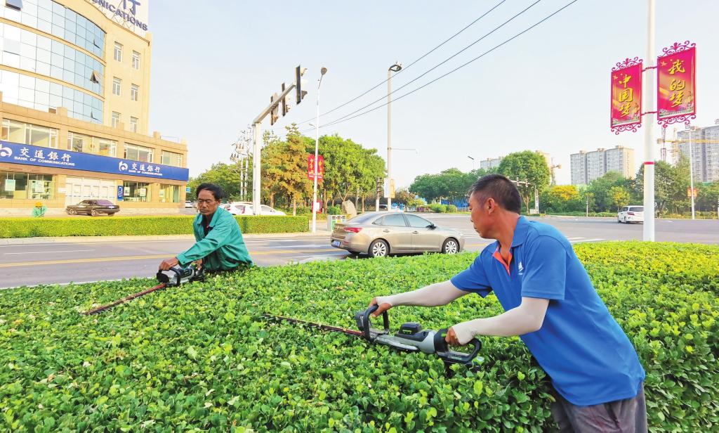 近日,我市園林部門組織人員對(duì)城區(qū)綠化帶進(jìn)行了修剪。園林工人的辛勤工作為市民營造了舒適的環(huán)境。 (王國棟 攝)