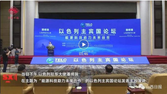 在高峰論壇發(fā)表主旨演講;與太原市市長共同種植友誼樹30棵并樹立紀(jì)念碑,寓意中以30年合作取得豐碩成果;出席以色列分論壇與能源產(chǎn)業(yè)B2B對接會......作為以色列駐華大使,潘綺瑞和她所代表的以色列“主賓國”之旅很是繁忙。