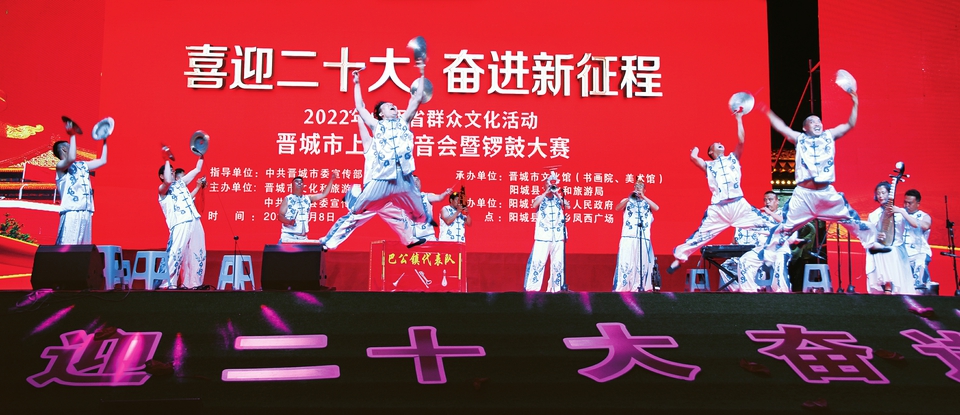 黨的二十大即將召開,三晉兒女歡欣鼓舞,充滿期待。晉城市上黨八音會(huì)在鑼鈸并舉、激越高昂的聲樂中,將黨的二十大召開的喜訊,傳遍澤州大地;運(yùn)城市旗袍展演秀出紅紅火火的幸福日子及喜慶之情;臨汾市鑼鼓大賽奏響時(shí)代最強(qiáng)音,禮贊新時(shí)代……三晉大地載歌載舞,一系列主題文化活動(dòng)都表達(dá)著對(duì)黨的二十大的翹首企盼,及對(duì)祖國更加繁榮昌盛的祝福之情。