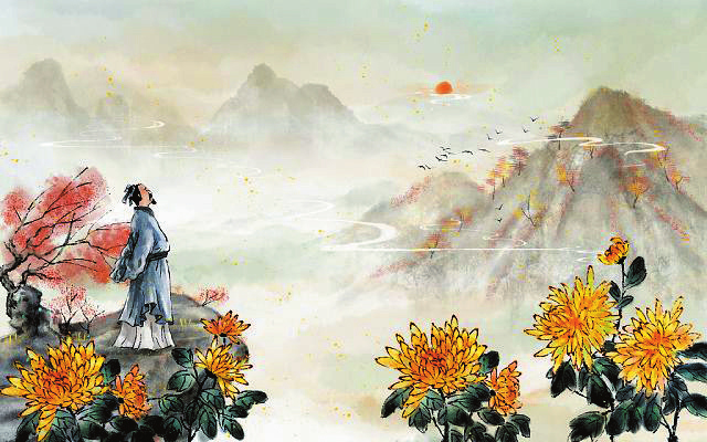 重陽節(jié)作為中華民族重要的傳統(tǒng)節(jié)日,其獨(dú)具特色的民俗文化在傳統(tǒng)詩詞中有鮮明的體現(xiàn)。歷代文人墨客以“重陽”為題,感受著重陽時節(jié)的美好風(fēng)光,登高望遠(yuǎn),飲酒賞菊,留下了浩如煙海的佳作?!捌澇讲上删?,薦壽慶重陽”,古詩詞中的重陽民俗既擁有無限的詩意風(fēng)光,也蘊(yùn)含了中華民族傳統(tǒng)孝道文化思想。 農(nóng)歷九月初九重陽節(jié),被列入首批國家級非物質(zhì)文化遺產(chǎn)名錄,與除夕、中元節(jié)、清明節(jié)并列為中國傳統(tǒng)文化四大祭祖節(jié)日。關(guān)于重陽節(jié)的起源,說法不一,主要有“祭祖祈福說”“去災(zāi)辟邪說”“長壽說”“慶豐收說”等,其中“祭祖祈福說”流傳最廣。關(guān)于重陽祭祖的文字記載,最早可追溯于《呂氏春秋》:“九月命家宰,農(nóng)事備收,舉五種之要。藏帝籍之收于神倉,祗敬必飭?!笨梢姰?dāng)時已有秋收后祭祖以感謝祖先恩德的活動。南北朝時期,古人在重陽節(jié)祈福宴飲,劉苞在《九日侍宴樂游苑正陽堂詩》中描繪了重陽宴飲歌舞的盛況:“云飛雅琴奏,風(fēng)起洞簫吹。曲終高宴罷,景落樹陰移。”到了唐代,重陽節(jié)被正式定為民族節(jié)日,人們在這一天舉辦祭祀祈?;顒?,詩人王維在《奉和圣制重陽節(jié)宰臣及群官上壽應(yīng)制》中有云:“四海方無事,三秋大有年。百生無此日,萬壽愿齊天?!碧浦?,各朝沿襲重陽祭祀祈福的習(xí)俗,并發(fā)展了更加豐富的民俗活動,或登高望遠(yuǎn),或賞菊賦詩,文人墨客以重陽民俗為線索,留下無數(shù)經(jīng)典詩作。 “楚萬重陽日,群公賞宴來。共乘休沐暇,同醉菊花杯?!碧拼娙嗣虾迫蛔鳌逗唾Z主簿弁九日登峴山》一詩,透露重陽宴飲、知己雅集等活動已成重陽民俗文化的主流。唐代詩人白居易的《九日登西原宴望同諸兄弟作》道出了重陽之際賞菊飲酒的文人風(fēng)致:“病愛枕席涼,日高眠未輟。兄弟呼我起,今日重陽節(jié)。起登西原望,懷抱同一豁。移座就菊叢,糕酒前羅列。雖無絲與管,歌笑隨情發(fā)。”朱灣有《重陽日陪韋卿宴》,“清規(guī)陳侯事,雅興謝公題。入座青峰近,當(dāng)軒遠(yuǎn)樹齊”,詩人與知己節(jié)日相聚,詩酒唱和,不僅為重陽節(jié)增添了一份雅興,也展現(xiàn)了喜慶歡樂的節(jié)日氛圍。 登高是重陽佳節(jié)流傳至今的民俗。據(jù)宋代孟元老《東京夢華錄》記載:“都人多出郊外登高,如倉王廟、四里橋、愁臺、梁王城、硯臺、毛駝岡、獨(dú)樂岡等處宴聚。”可見時人對外出登高的喜愛。宋代文人晏殊的《訴衷情·芙蓉金菊斗馨香》描繪了登高時所見的秋日盛景:“芙蓉金菊斗馨香,天氣欲重陽。遠(yuǎn)村秋色如畫,紅樹間疏黃。流水淡,碧天長,路茫茫。憑高目斷,鴻雁來時,無限思量。”重陽之際,木芙蓉、菊花香氣沁人,在藍(lán)天碧水間,詩人登高遙望,看到鴻雁飛來,勾起無限思鄉(xiāng)之情。宋代詞人吳文英作《蝶戀花·九日和吳見山韻》,詞云:“明月枝頭香滿路。幾日西風(fēng),落盡花如雨。倒照秦眉天鏡古。秋明白鷺雙飛處。自摘霜蔥宜薦俎。可惜重陽,不把黃花與。帽墮笑憑纖手取。清歌莫送秋聲去?!惫蠢樟艘环歉?、踏歌、賞秋的秋日勝景圖。申時行的《吳山行》一詩具體描繪了民間在重陽節(jié)這天登高的盛況:“九月九日風(fēng)色嘉,吳山勝事俗相夸。闔閭城中十萬戶,爭門出郭紛如麻。拍手齊歌太平曲,滿頭爭插茱萸花?!敝仃柤压?jié),天朗氣清,百姓競相出城,到吳山一覽勝景,悅耳清脆的歌聲回蕩在耳畔,隨處可見茱萸插頭、喜不自勝的游人,渲染了祥和喜慶的節(jié)日氣氛。