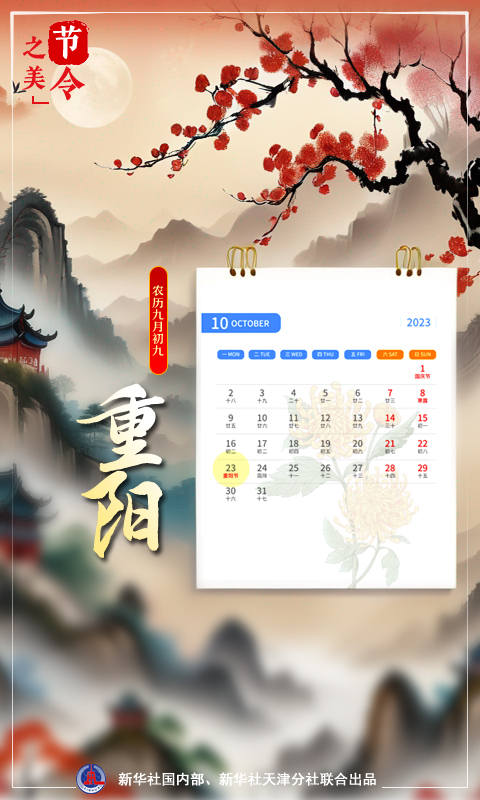 新華社天津10月22日電(記者周潤?。熬湃拯S花酒,登高會昔聞。”10月23日,農(nóng)歷九月初九,重陽節(jié)。歲歲重陽,今又重陽。農(nóng)歷九月初九緣何是重陽?其中蘊含著怎樣的“數(shù)字密碼”?