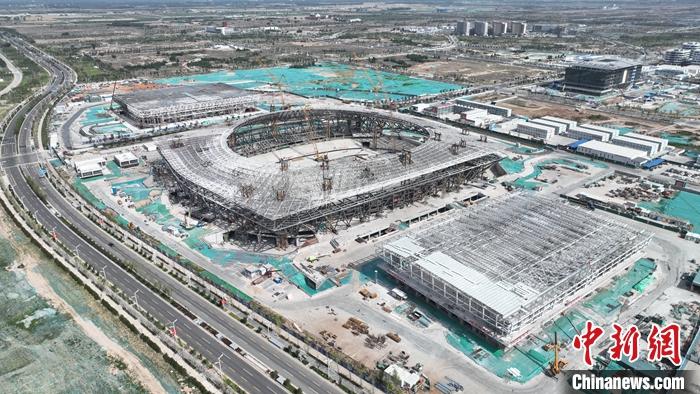 資料圖為6月8日,航拍雄安體育中心。(無人機(jī)照片)中新社記者 韓冰 攝