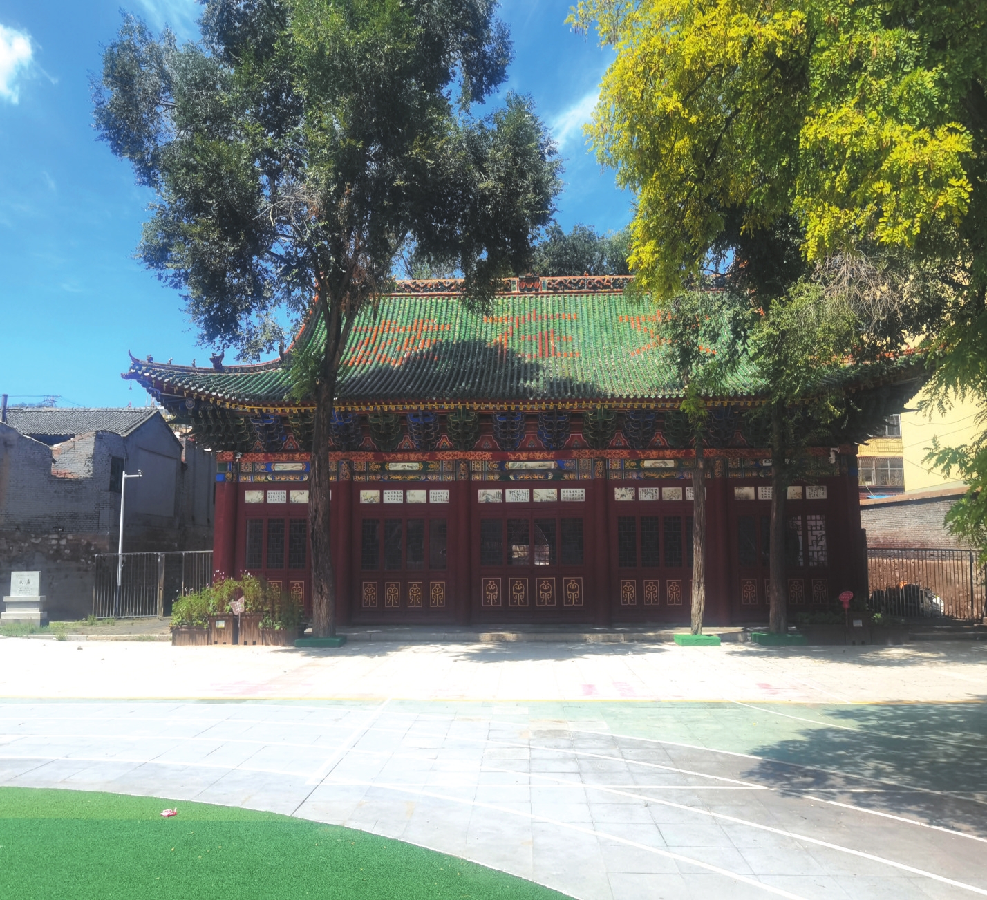 文廟位于寧武縣城人民大街的原寧武一中(現(xiàn)實驗小學)院內,坐北朝南,南北長159米,東西寬29.2米,占地面積約6000平方米,為明清建筑。現(xiàn)存建筑有大成殿、八角樓、明倫堂及東西配殿。