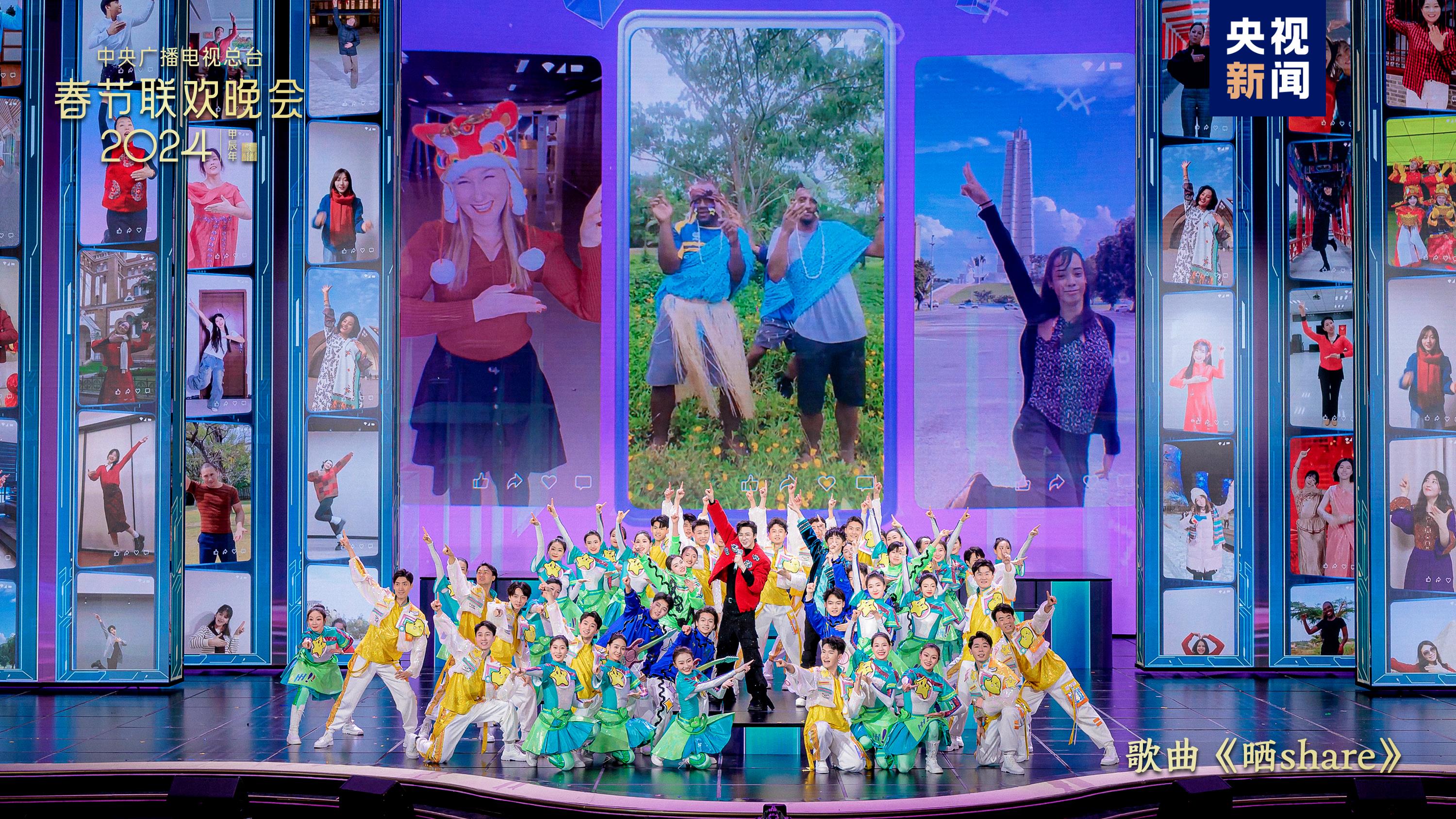 伴著一曲動(dòng)感快樂(lè)的《曬share》,大張偉、劉宇寧與全球網(wǎng)友聯(lián)屏共舞“龍年主題舞蹈”,分享春節(jié)的喜慶歡樂(lè)。這支舞蹈來(lái)自總臺(tái)在海內(nèi)外社交平臺(tái)發(fā)起的龍年主題舞蹈挑戰(zhàn)賽,目前已吸引68個(gè)國(guó)家和地區(qū)的網(wǎng)友熱情參與,全球閱覽量超5.89億。今年正值中法建交60周年暨中法文化旅游年,索拉爾、廖昌永、吉安·馬可·夏雷提、張英席、安杰洛·德?tīng)枴ぞS奇奧、袁岱等中外藝術(shù)家共同演繹《美人》(法語(yǔ)音樂(lè)劇《巴黎圣母院》選段)。全球共舞,以歌會(huì)友,總臺(tái)春晚用文藝精品促進(jìn)文化交流互鑒,讓美美與共的文明百花園生機(jī)盎然。