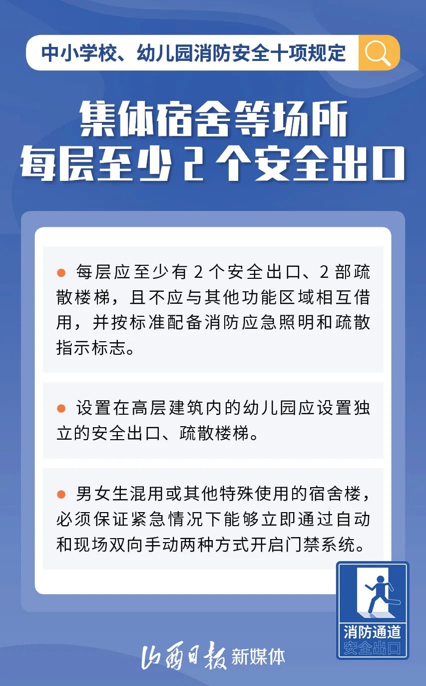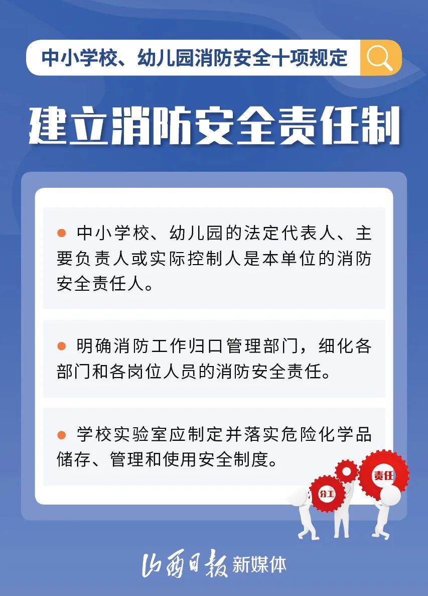 為加強中小學校、幼兒園消防安全管理,近日,教育部、國家消防救援局研究制定了《中小學校、幼兒園消防安全十項規(guī)定》,具體規(guī)定內(nèi)容如下。